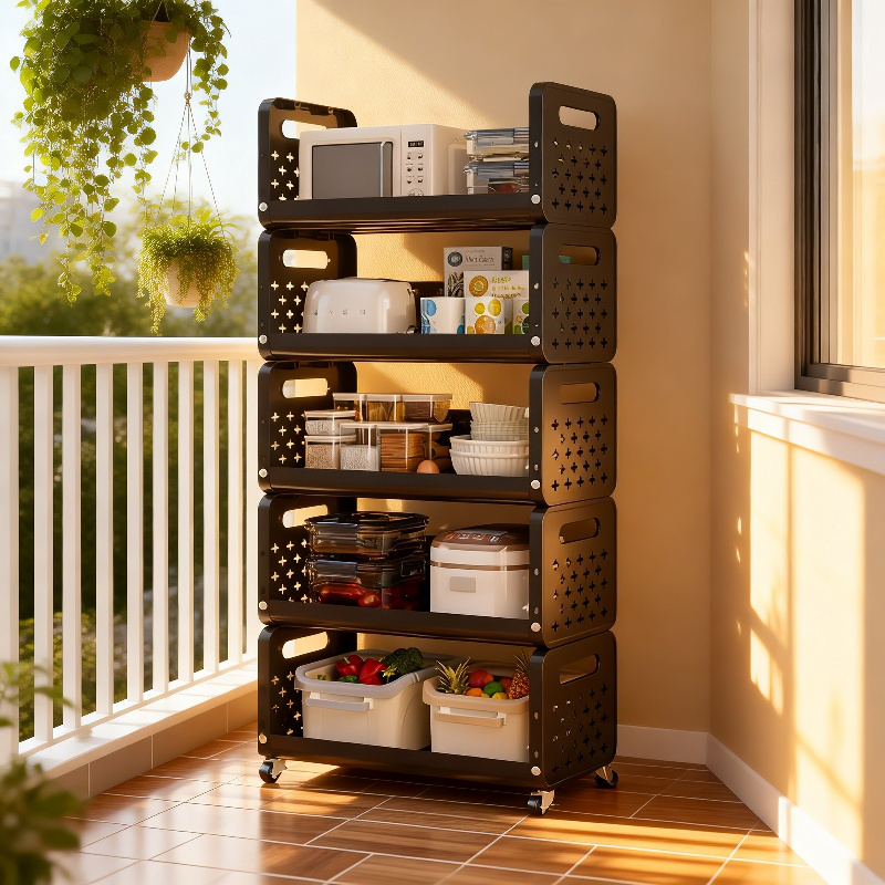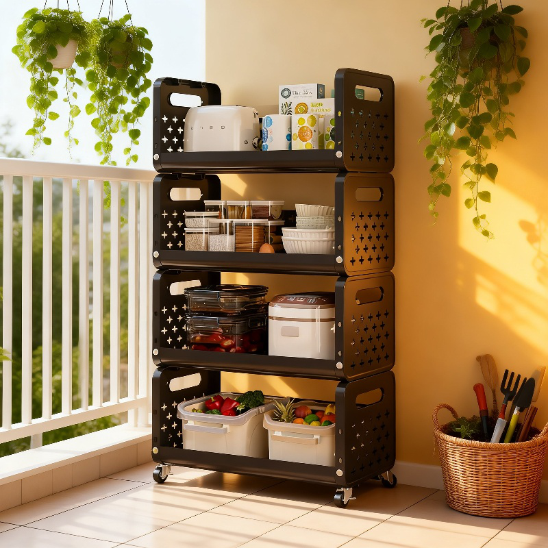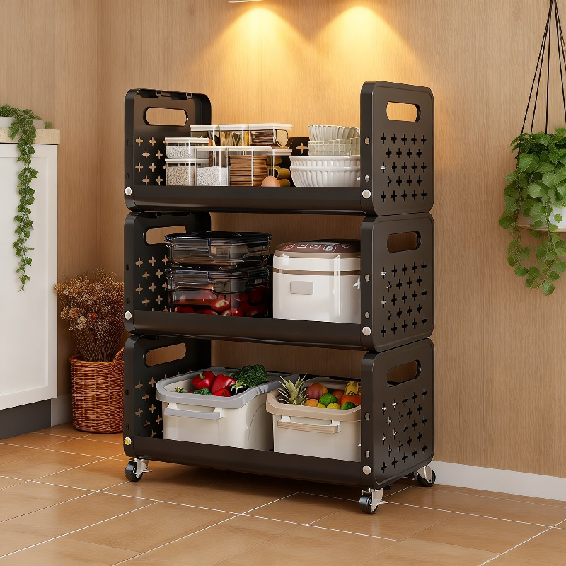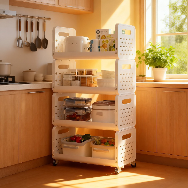 ● 組み立てが簡単で、スペースに合わせて自由に段数を調整できるため、狭いキッチンでも有効活用できます。